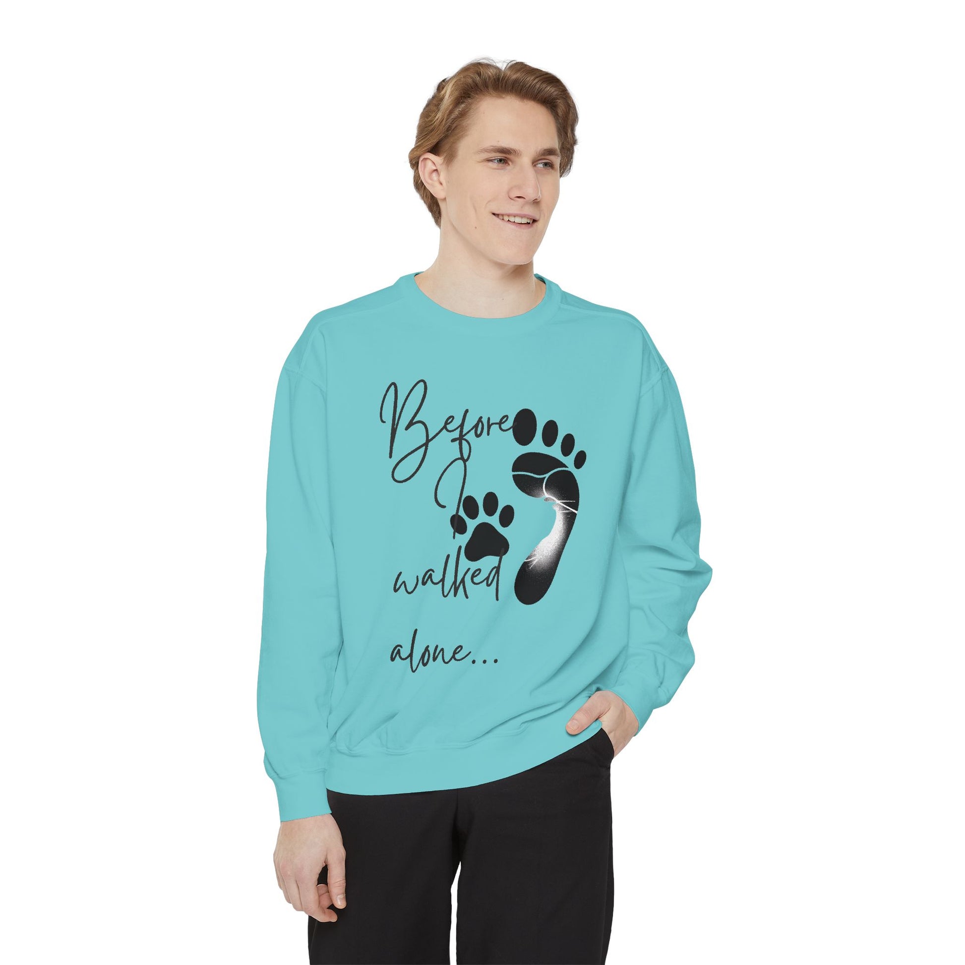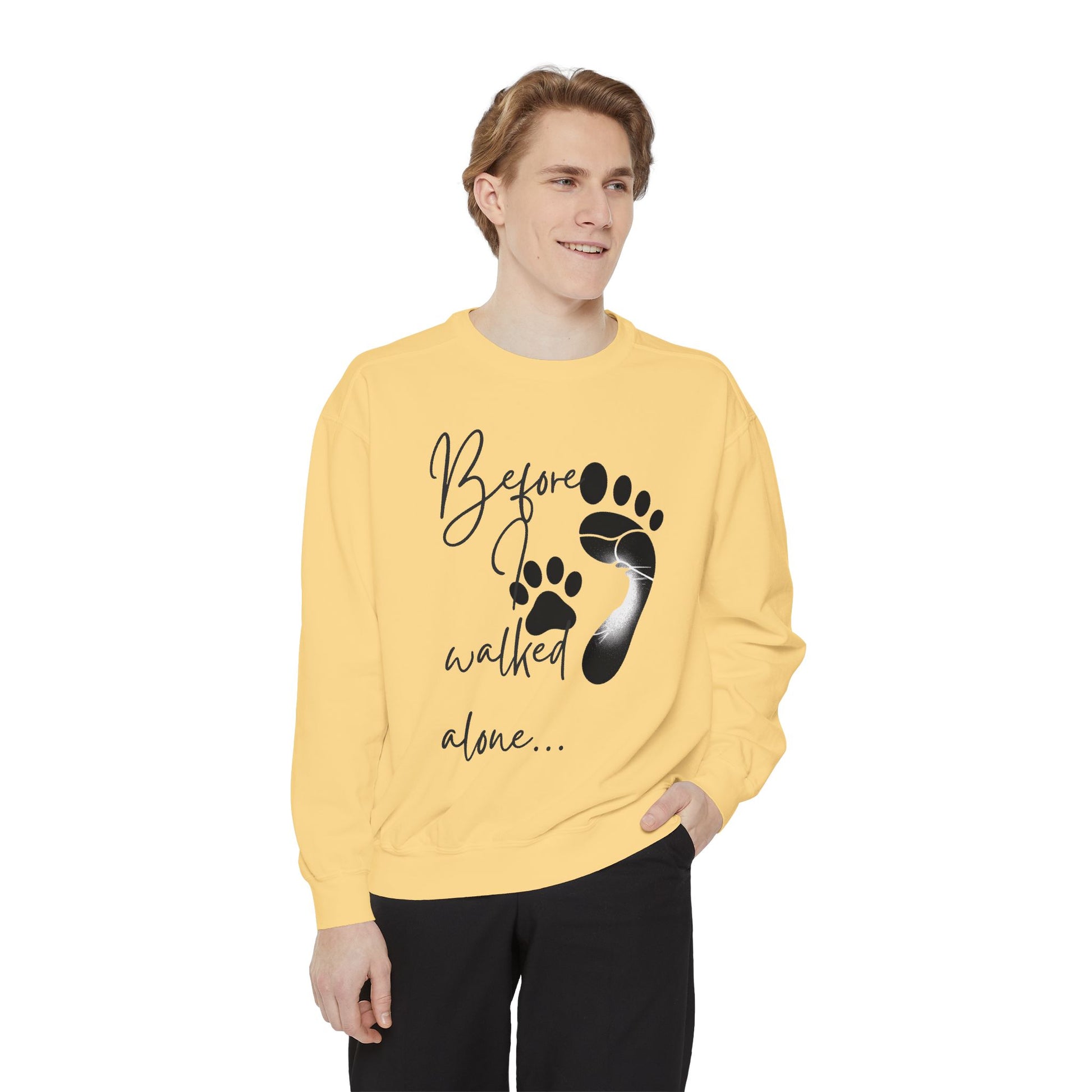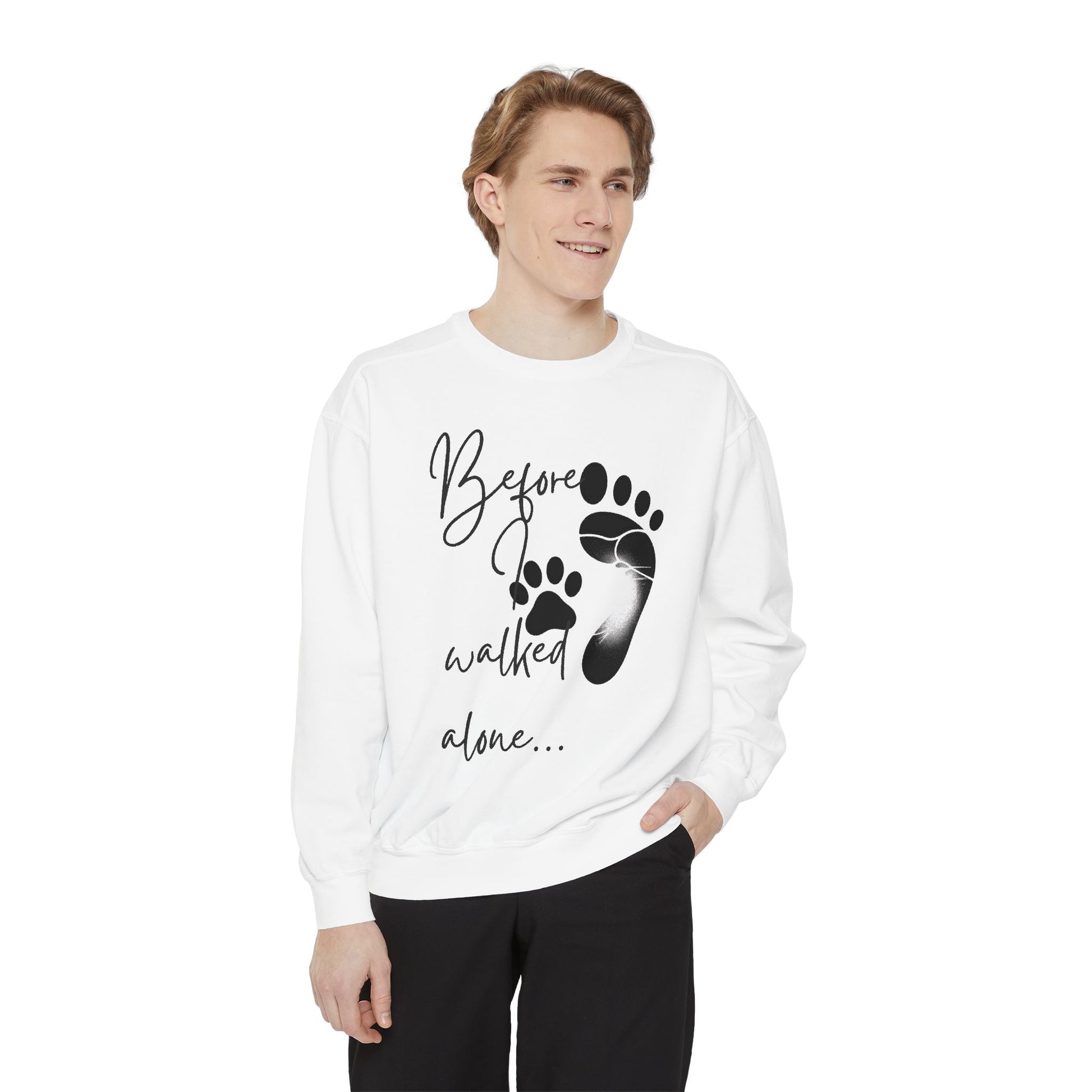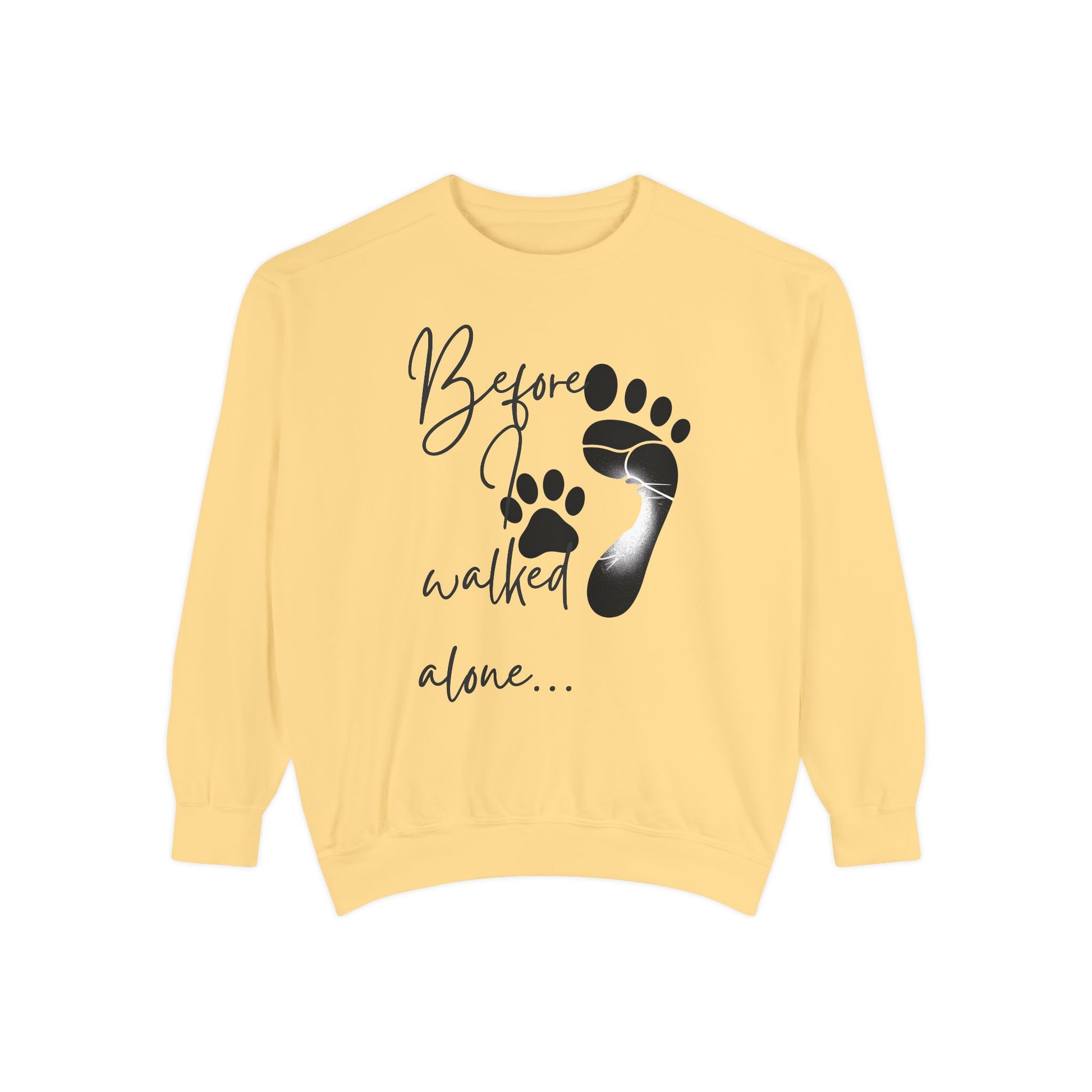 An emotional design showing companionship and love of pets, perfect for pet lovers who want to showcase their affection. This garment-dyed sweatshirt provides a well-fitted, comfortable feel with its ribbed collar, cuffs, and bottom hem, making it ideal for casual wear or cozy nights at home. Relevant for pet-themed holidays and occasions.